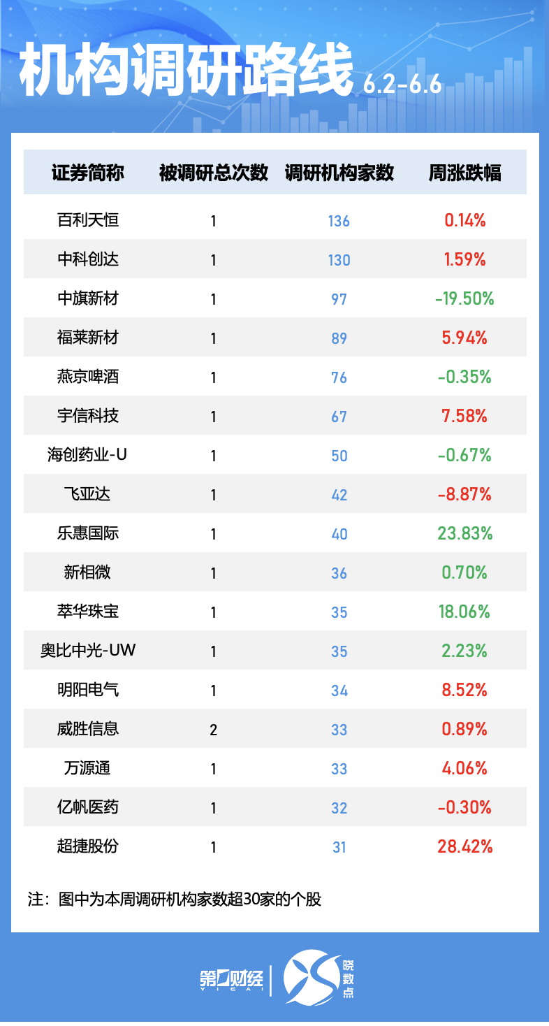 机构本周共调研了198家上市公司,其中百利天恒最获关注,参与调研的机构达136家。此外,中科创达、中旗新材均获超90家机构调研。